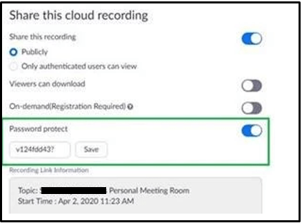 Zoom changed the default MinnState settings for cloud recordings in Zoom on April 11, 2020. Cloud-based recordings now require a password before the recording could be viewed. Any recordings made during that time frame had a password automatically assigned to them.