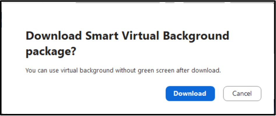 - The “Download Smart Virtual Background packaage?” dialog box may appear.